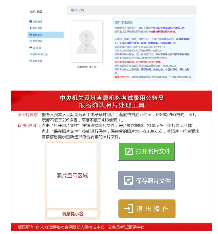 照片信息會對審核結(jié)果產(chǎn)生影響,照片審核不通過的,將影響資格條件審核,需重新提交合格的照片。為確保上傳照片的質(zhì)量,網(wǎng)站提供了照片處理工具。建議報考者下載該照片處理工具,先在本地使用該工具對用以報名的照片進行處理后,再上傳到報名網(wǎng)站。使用該工具時,應(yīng)注意: