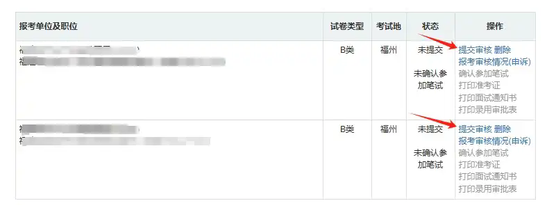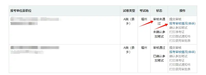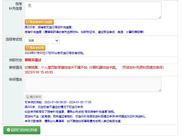 2) 沒有通過資格審核的報考者,可以申訴或者改報其他職位(操作方式同初次報考)。