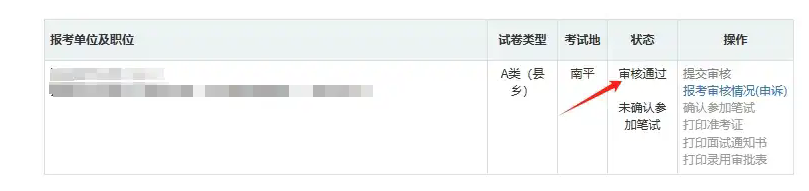 “職位報考”界面顯示“審核通過”,則表示該職位報名成功。