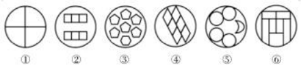 如上圖,圖形被分割成多個(gè)封閉區(qū)域,考慮面數(shù)量,面數(shù)量無(wú)法分成兩組,進(jìn)一步觀察發(fā)現(xiàn),每幅圖中明顯具有相同形狀的面,考慮相同面的數(shù)量,圖①⑤⑥中相同面的最大數(shù)量為4,圖②③④中相同面的數(shù)量為6。