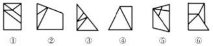 如上圖,圖形被分割成多個(gè)封閉區(qū)域,考慮面數(shù)量,面數(shù)量無(wú)法分成兩組,進(jìn)一步觀察發(fā)現(xiàn),每個(gè)圖形均由三角形的面和四邊形的面組成,考慮分開數(shù)三角形面和四邊形面的個(gè)數(shù)。①②④中三角形面的個(gè)數(shù)比四邊形面的個(gè)數(shù)多1,③⑤⑥中三角形面的個(gè)數(shù)比四邊形面的個(gè)數(shù)少1。