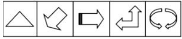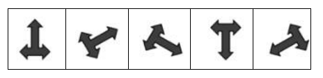 如上圖,圖形均為軸對(duì)稱圖形,考慮對(duì)稱軸的方向和數(shù)量。圖形的對(duì)稱軸均只有1條,且對(duì)稱軸方向按照順時(shí)針?lè)较蛞来涡D(zhuǎn)45°。