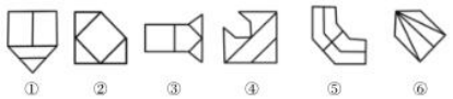 如上圖,每幅圖都是軸對(duì)稱圖形,畫出對(duì)稱軸發(fā)現(xiàn),圖①⑤⑥中的對(duì)稱軸經(jīng)過(guò)3個(gè)面,圖②③④中的對(duì)稱軸經(jīng)過(guò)1個(gè)面。