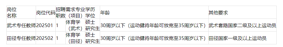 本年度計(jì)劃招聘體育專任教師(人事代理)2名,具體見下表。
