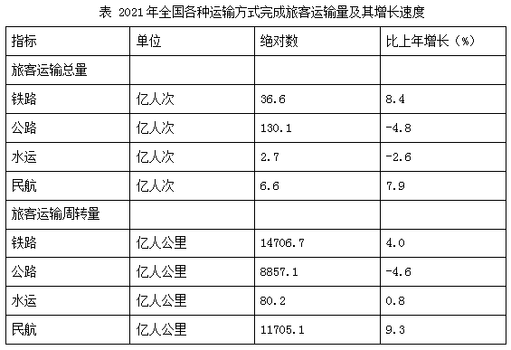 問(wèn)題:2021年全國(guó)各種運(yùn)輸方式完成旅客周轉(zhuǎn)量共多少億人公里?( )