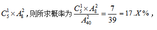 【解析】先將小張的座位固定,剩39個座位小李可以選,小李要和小張坐在同一排,只能在小張坐的那一排剩余的7個位置上選,故兩人坐在同一排的概率是