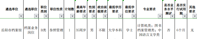 岳陽市檔案館遴選1名工作人員