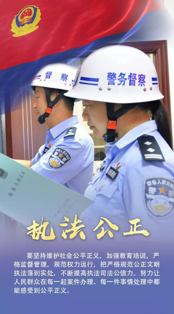 三是執(zhí)法公正。要堅持維護社會公平正義,加強教育培訓,嚴格監(jiān)督管理,規(guī)范權(quán)力運行,把嚴格規(guī)范公正文明執(zhí)法落到實處,不斷提高執(zhí)法司法公信力,努力讓人民群眾在每一起案件辦理、每一件事情處理中都能感受到公平正義。