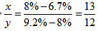 【答案】B。解析:由題意可知:題干中涉及到進(jìn)口額、出口額、總值的值和增長(zhǎng)率。而所求為2011年的出口額和進(jìn)口額的比值,即他們基期值的比值。而增長(zhǎng)量=基期值×增長(zhǎng)率,總值又分為進(jìn)口額和出口額兩個(gè)部分。則進(jìn)口額的增長(zhǎng)量+出口額的增長(zhǎng)量=總值的增長(zhǎng)量。設(shè)2011年上半年我國(guó)外貿(mào)出口額和進(jìn)口額分別為x、y億美元,則2011年上半年我國(guó)外貿(mào)進(jìn)出口總值為x+y億美元。故x·9.2%+y·6.7%= (x+y)×8%,解得