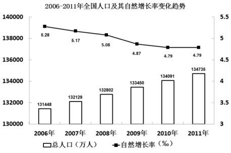 【解題思路】定位圖形材料1可得: 2006年自然增長(zhǎng)率為5.28‰,2011年的自然增長(zhǎng)率為4.79‰。故2011年人口自然增長(zhǎng)率-2006年人口自然增長(zhǎng)率=4.79‰-5.28‰=-0.49‰材料單位為‰,問(wèn)題為百分點(diǎn),則需換算單位:-0.49‰=-0.049%,即與2006年相比2011年我國(guó)的人口自然增長(zhǎng)率下降了0.049個(gè)百分點(diǎn)。