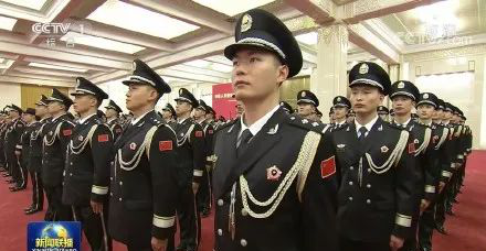 新式警禮服的第一次亮相,是在2020年8月26日。當(dāng)日在莊嚴(yán)肅穆的人民大會堂,習(xí)近平總書記向人民警察授旗,三百余名身姿挺拔的人民警察身著人民警察禮服——