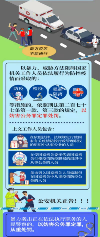 面對(duì)近期各地疫情的陸續(xù)出現(xiàn),公安機(jī)關(guān)將依法懲治妨害新型冠狀病毒感染肺炎疫情防控違法犯罪行為,保障人民群眾生命安全和身體健康,保障社會(huì)安定有序,保障疫情防控工作順利開(kāi)展。
