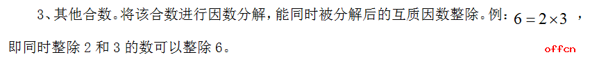 (2)整體做差。把個(gè)位數(shù)字截去,再?gòu)挠嘞碌臄?shù)中,減去個(gè)位數(shù)的2倍,差是7的倍數(shù),則原數(shù)能被7整除。奇數(shù)位上數(shù)字和與偶數(shù)位上數(shù)字和之差能被11整除,則原數(shù)能被11整除。把個(gè)位數(shù)字截去,再?gòu)挠嘞碌臄?shù)中,減去個(gè)位數(shù)的9倍,差是13的倍數(shù),則原數(shù)能被13整除。