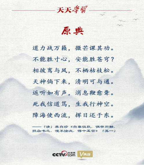 “不能勝寸心,安能勝蒼穹?”出自近代著名啟蒙思想家龔自珍 1827年所作一組古體詩(shī)的第一首,意思是人不能戰(zhàn)勝自己的方寸之心,又怎能戰(zhàn)勝?gòu)V闊無(wú)垠的外部世界?表達(dá)了詩(shī)人的振衰起弊之志和立志改革的抱負(fù)。