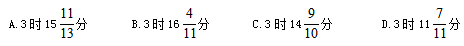 【答案】B。解析:從開始時(shí)刻,時(shí)針和分針成直角到后來(lái)的某一時(shí)刻時(shí)針和分針重合,相當(dāng)于整個(gè)過(guò)程分針比時(shí)針多走了90度,分針每分鐘走6°,時(shí)針每分鐘走0.5°,相當(dāng)于分針每分鐘比時(shí)針多走5.5°,要想多走90°,需要經(jīng)過(guò)90除以5.5即