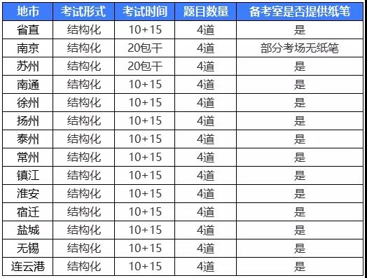結(jié)合近幾年江蘇省公務員招錄情況,就面試形式而言,仍以傳統(tǒng)的結(jié)構(gòu)化面試為主。在常州、南通、蘇州、淮安、鎮(zhèn)江、泰州等部分考場曾出現(xiàn)過結(jié)構(gòu)化小組面試形式;另外,部分省直特殊崗位,如商務廳,曾采用過無領(lǐng)導小組討論面試。除此之外,其他基本都是結(jié)構(gòu)化面試。2021年3月6日和3月7日面試情況基本一致,10+15模式居多,采用20分鐘結(jié)構(gòu)化的地市越來越少。值得注意的是,以往采用“10+15”模式的南京這次變?yōu)榱恕?0分鐘結(jié)構(gòu)化”。
