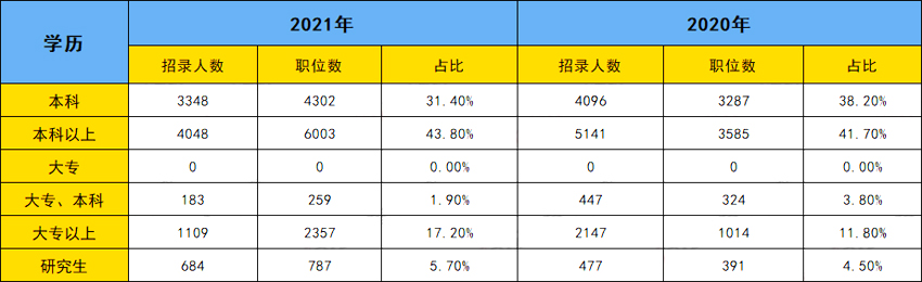 2020-2021年廣東省考崗位對學(xué)歷要求情況統(tǒng)計表