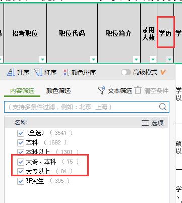 那如何從職位表中篩選出??茖W(xué)歷可報考的職位呢?