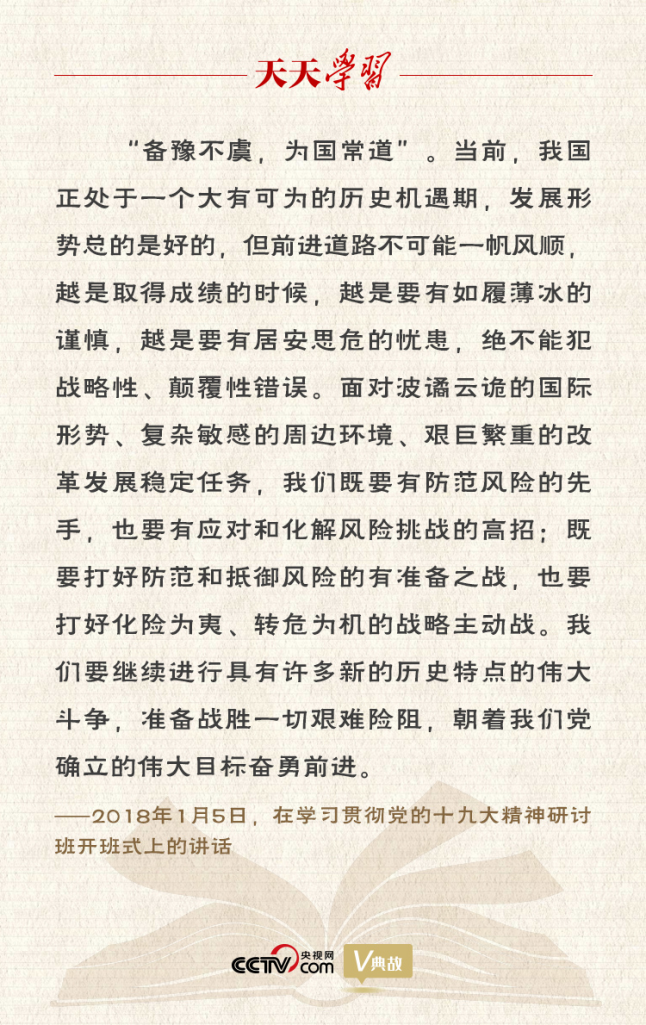 我們黨在內(nèi)憂外患中誕生,在磨難挫折中成長,在戰(zhàn)勝風(fēng)險挑戰(zhàn)中壯大,始終有著強烈的憂患意識、風(fēng)險意識。