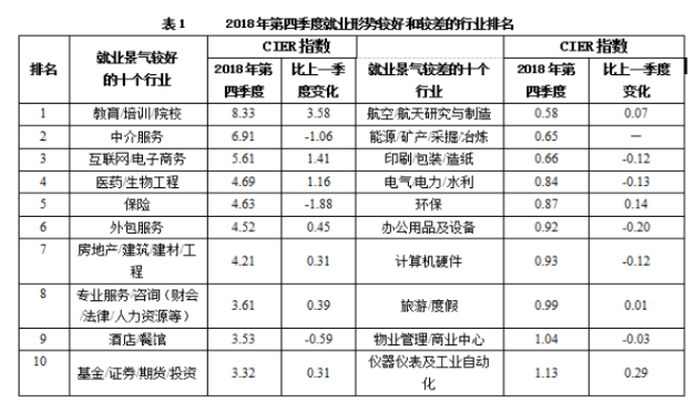 B.航空/航天研究與制造位居第四季度就業(yè)景氣較差行業(yè)榜首,說明該行業(yè)人才并不稀缺