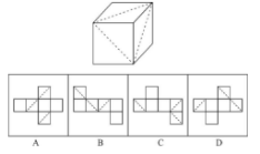 33、下列選項(xiàng),不可能是所給立方體展開(kāi)圖的是( )。