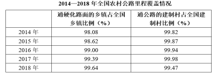 C. 2014—2018年,通硬化路面的鄉(xiāng)鎮(zhèn)占全國(guó)鄉(xiāng)鎮(zhèn)的比例逐年提高