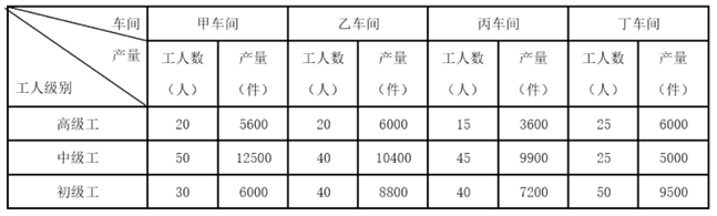 某機(jī)械加工企業(yè)下設(shè)四個(gè)生產(chǎn)車間生產(chǎn)加工同種類型和型號(hào)的產(chǎn)品,并以人均產(chǎn)量評(píng)價(jià)勞動(dòng)生產(chǎn)率。