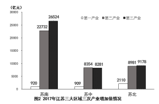 B.2017年蘇北和蘇中地區(qū)進(jìn)口額之和不及蘇南的八分之一
