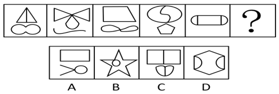 5、從所給的四個選項中,選擇最合適的一個填入問號處,使之呈現(xiàn)一定的規(guī)律性:( )