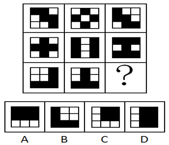 8、從所給的四個選項中,選擇最合適的一個填入問號處,使之呈現(xiàn)一定的規(guī)律性:( )