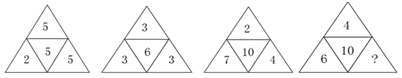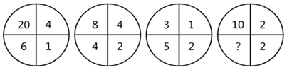 4、從所給的四個選項中,選擇最合適的一個填入問號處,使之呈現(xiàn)一定的規(guī)律性:( )