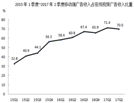 127、2017年2季度,在線視頻移動端廣告收入環(huán)比增長速度:( )
