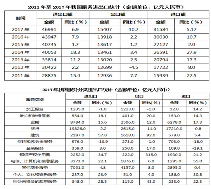 C、2017年我國服務(wù)進(jìn)出口中,其他商業(yè)服務(wù)進(jìn)出口實(shí)現(xiàn)的順差最多
