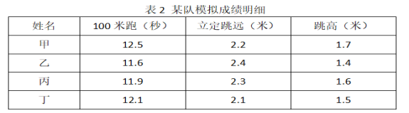 22.已知某運動會田徑綜合賽以選手三項運動的綜合積分高低決定排名。具體積分規(guī)則如下表1所示,而某隊四位隊員的模擬成績如表2。