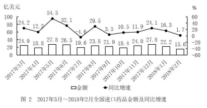 C.2017年第二季度,全國進(jìn)口藥品金額超過75億美元