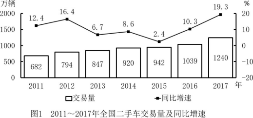D.2011~2017年,全國二手車交易量同比增速低于10%的年份有4個