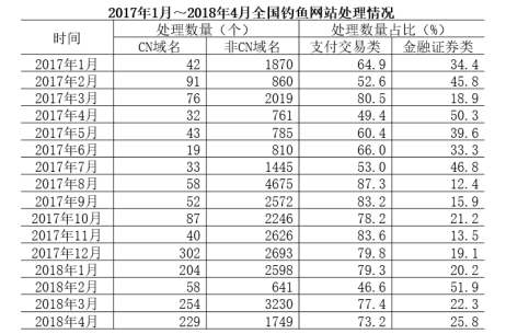 122.2018年第一季度全國處理釣魚網(wǎng)站總數(shù):( )