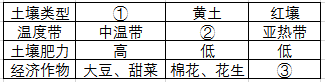 C.①黑土 ②中溫帶 ③小麥,茶葉 D.①紫色土 ②亞熱帶 ③水稻,荔枝