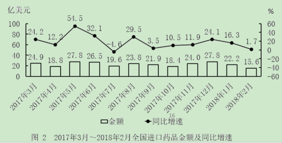 C.2017年第二季度,全國進口藥品金額超過75億美元