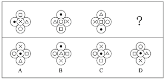 【例4】請從所給的四個選項中,選出最恰當的一項填入問好處,使之呈現一定的規(guī)律性:( )