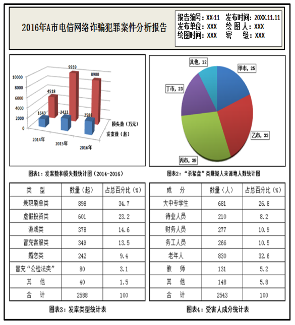 85.面對當(dāng)前該類案件的高發(fā)態(tài)勢,A市公安機關(guān)擬進(jìn)一步加強電信網(wǎng)絡(luò)詐騙的預(yù)防工作力度。結(jié)合以上四個圖表的數(shù)據(jù)分析,以下措施針對性最強的是:( )(單選)