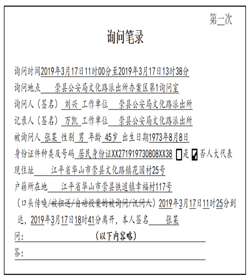 86.民警到達(dá)現(xiàn)場,初步了解情況后,將張某口頭傳喚至公安機關(guān)進(jìn)行詢問,制作了《詢問筆錄》(如下所示)。根據(jù)有關(guān)法律規(guī)定,筆錄內(nèi)容不符合規(guī)范要求的是:( )(單選)