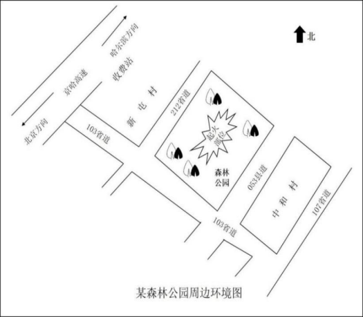 某森林公園是甲市一處4A級風(fēng)景區(qū),地處平原,交通便利,每年接待大量游客。某年4月17日13:50左右,公安派出所值班民警接到群眾打電話報警稱:公園中央地帶一處園區(qū)突然起火,現(xiàn)場濃煙滾滾,有多處明火燃燒,并有許多不明隱患。