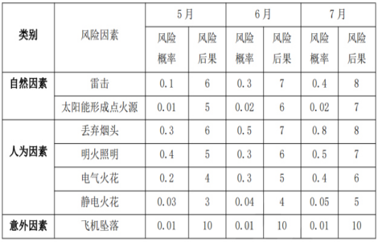 發(fā)生森林火災(zāi)風(fēng)險矩陣表