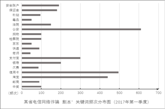 92.通過對(duì)電信網(wǎng)絡(luò)詐騙犯罪中嫌疑人使用的詐騙“劇本”進(jìn)行分析,統(tǒng)計(jì)出頻次較高的關(guān)鍵詞(見下圖)。結(jié)合該圖,為了進(jìn)一步提高整體防控水平,以下建議措施對(duì)社會(huì)公眾防范發(fā)案量突出的電信網(wǎng)絡(luò)詐騙犯罪案件合理的有( )(多選)