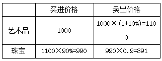 甲用1000萬元購買了一件藝術(shù)品并賣出,獲利為買進(jìn)價(jià)格的10%,隨后甲用藝術(shù)品賣出價(jià)格的90%買入一件珠寶,并以珠寶買進(jìn)價(jià)格的九折賣出。若上述交易中的其他費(fèi)用忽略不計(jì),甲最終:( )