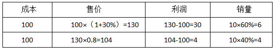 【答案】B【解析】本題所求利潤(rùn)率=(利潤(rùn)÷成本)×100%,題目中利潤(rùn)和成本都不知道,可以設(shè)特值進(jìn)行求解。一般設(shè)成本進(jìn)行特值,本題還涉及到銷量,同樣沒有具體數(shù)值,也可用特值進(jìn)行代替。將成本設(shè)為100,銷量設(shè)為10,用表格將題干信息進(jìn)行梳理: