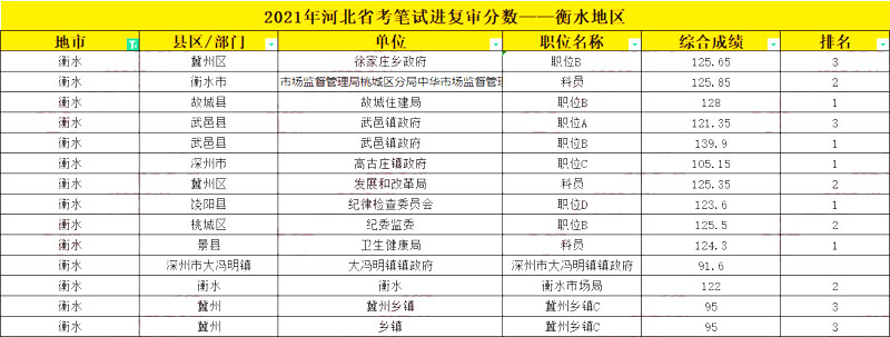 (2021省考衡水地區(qū)部分進(jìn)面分?jǐn)?shù))