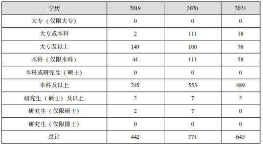 2019—2021海南省考各學(xué)歷招錄職位數(shù)量