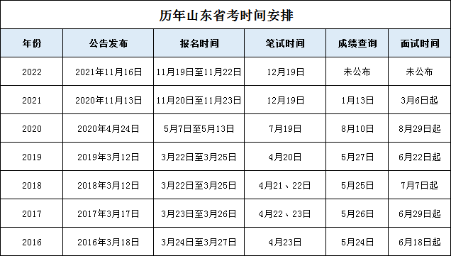 另附歷年山東公務(wù)員面試時(shí)間安排:
